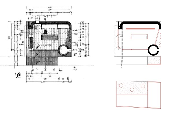 Basically “Trafik” was reconstucted following the original plans of Zoltán Ries, but a new layer was installed onto the building: window frames, roof edge coverings and shading elements are made of corten steel. The windows were replaced and redesigned for the new funcition. The visitors cannot enter into the exhibition space, but they can watch the exhibition from the outside. In this case the builing has a very active connection with the street. An outdoor sound system was installed in the ceiling, too, so the visitors can listen and watch the short art movies from the new public space in front of the building.
