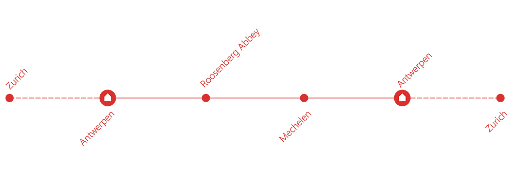 The trip starts at Zurich Main Station early in the morning. Go to Antwerp with two changes in Frankfurt am Main [D] and in Brussels [B]. You arrives to Antwerp in the middle of the afternoon, so you can start with a late lunch in one of the many good restaurants in the city. For first impression of the city I can recommend a walk along the river Schelde (photo): the old port and the Het Steen can be interesting. Tip: My accommodation was in a cozy and friendly district, just next to the Royal Museum of Fine Arts. The monument of Schelde Vrij stands on the middle of a round square and around you can find many good restaurants.