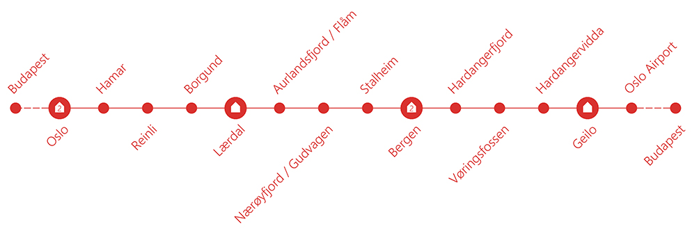 It was a 7-day trip with 3 people in the summer of 2022. It is worth to travel to Norway in the summer, because in this time the weather is good: the mornings are bit cool, but in the day it can be over 25°C. In the mountains and near the Norwegian Sea you should prepare with some warm clothes, too. We traveled by air plane and we rented a car in Oslo for 5 days. The accommodations were in Oslo (2 nights), Laerdal (1 night), Bergen (2 nights) and Geilo (1 night). On this trip we got to know the two major cities of Norway (Oslo and Bergen) and between these two cities there are many natural beauties, which are really worth see.